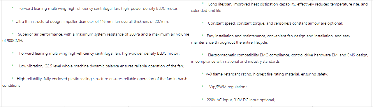 EC high-efficiency fan, high static pressure and high air volume, as well as low-noise structure design, easy maintenance, improve system aerodynamic performance, reduce noise and energy consumption.